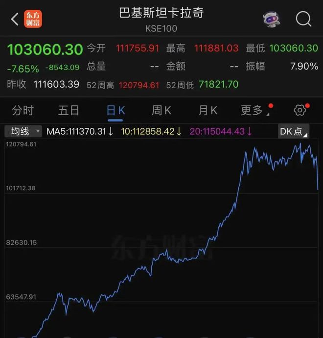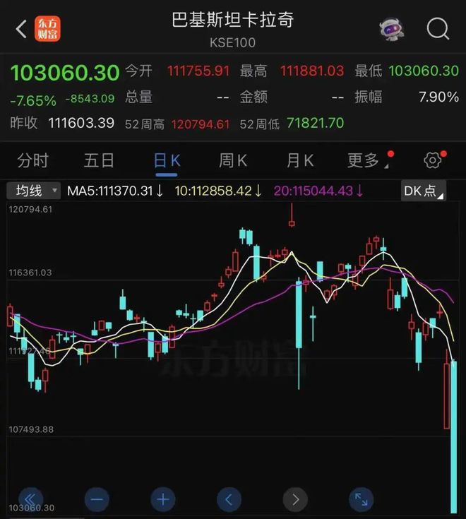 另外再吃个印巴股市的瓜,巴基斯坦昨天股指了,单日暴跌了7.6%,与此同时印度仅跌了不到1%,有人凭此来判断双方战局的优劣。