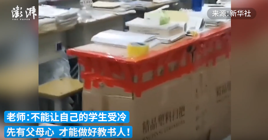 河南一高三班主任走红,担心前排学生腿冷,用纸箱为学生做挡风板。他表示,先有父母心,才能做好教书人。