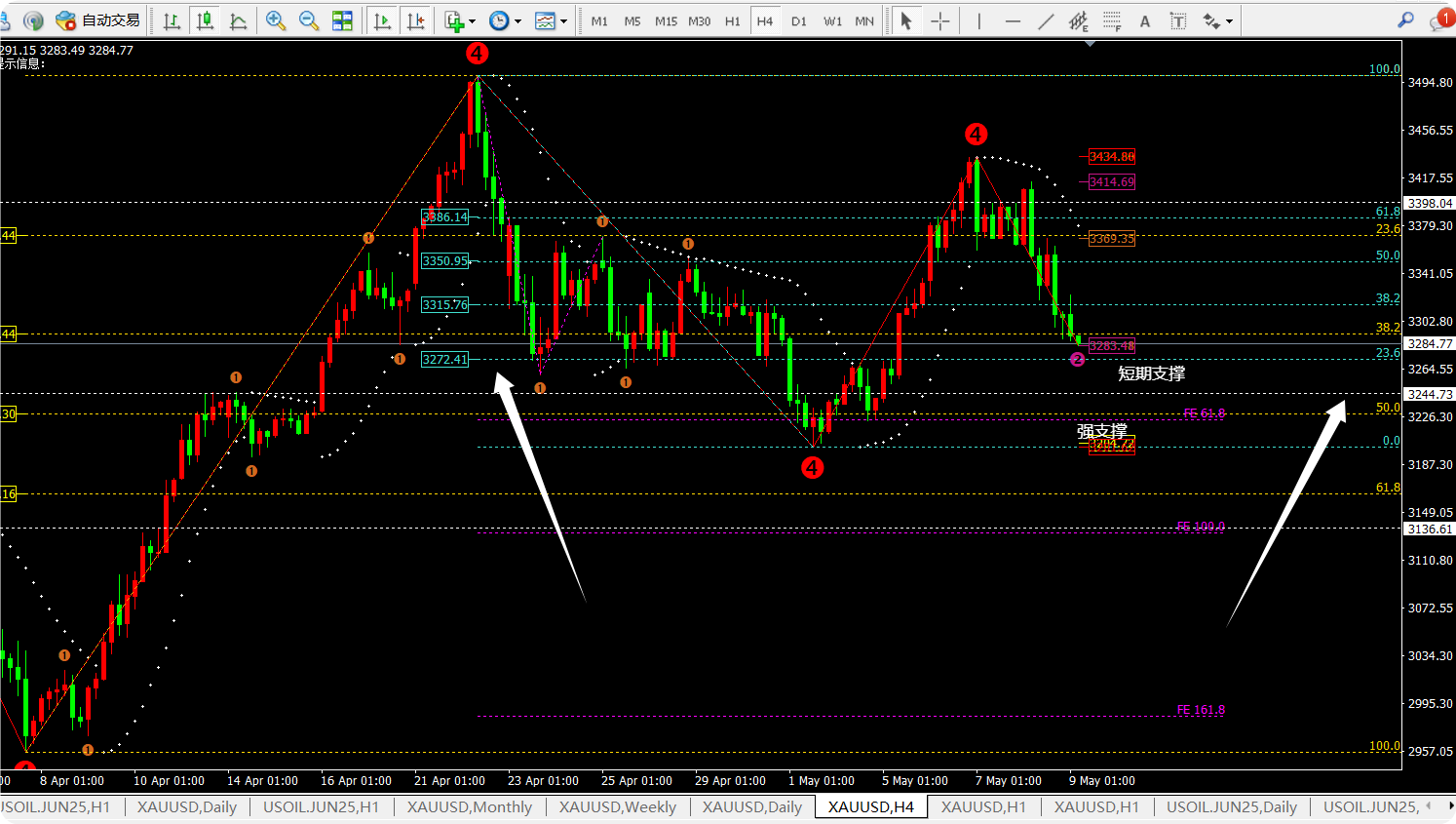 从昨日下跌3360之后的走势看:目前上方3362-72是有反弹的。那么3330和3345就是日线级别很好的做空点位。而昨日凌晨价格反弹的点是3310一线,目前价格下跌所以该位置附近是第一阻力点。